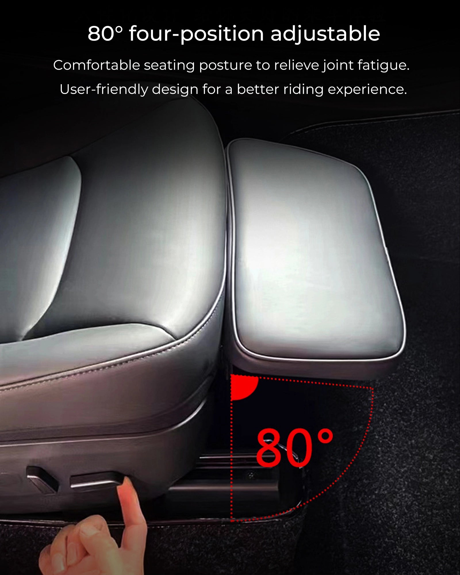 The electric leg support for the seat is very user-friendly, allowing users to adjust the height and angle of the support with a simple button press. This makes it a convenient and practical accessory for any Tesla Model Y or Model 3 owner.