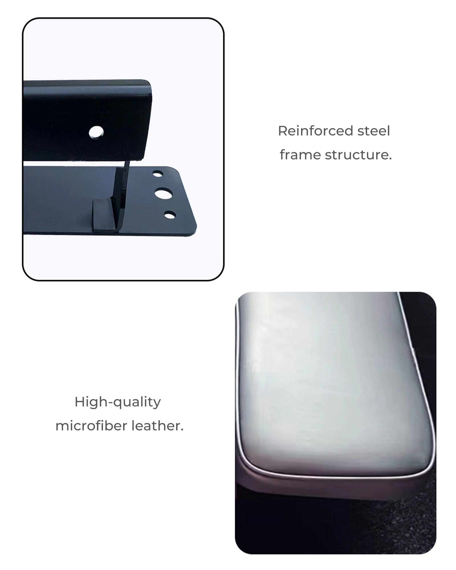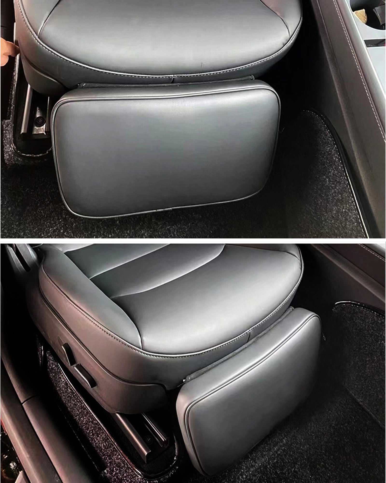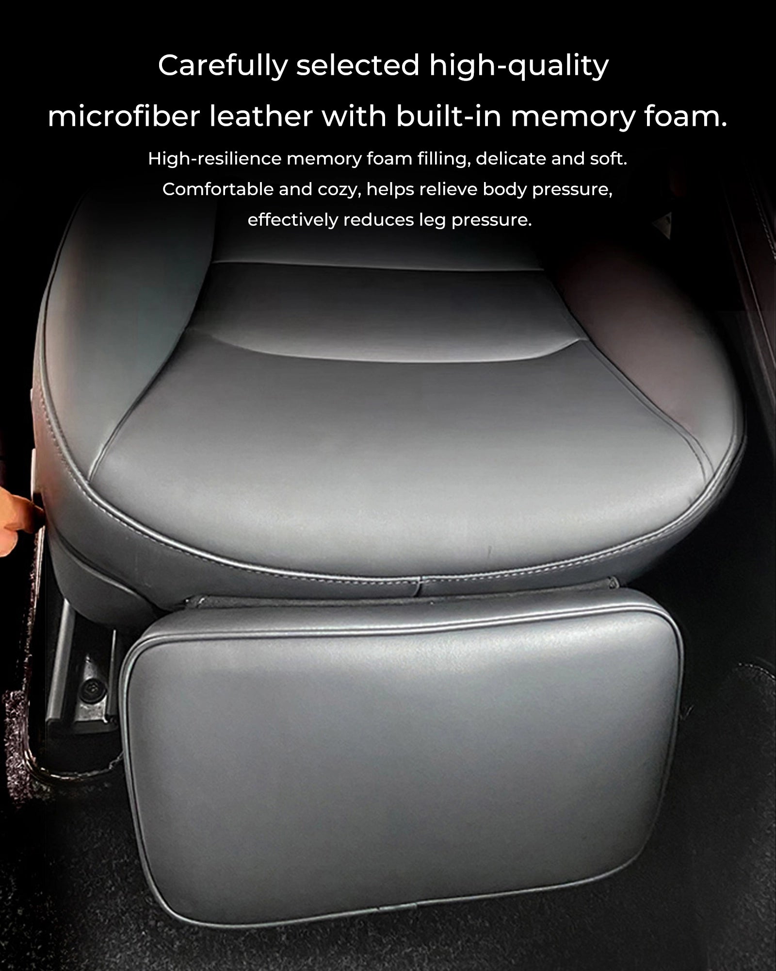 The leg rest is crafted from high-quality vegan leather material, making it durable, easy to clean, and long-lasting for any Tesla Model Y or Model 3 owner.