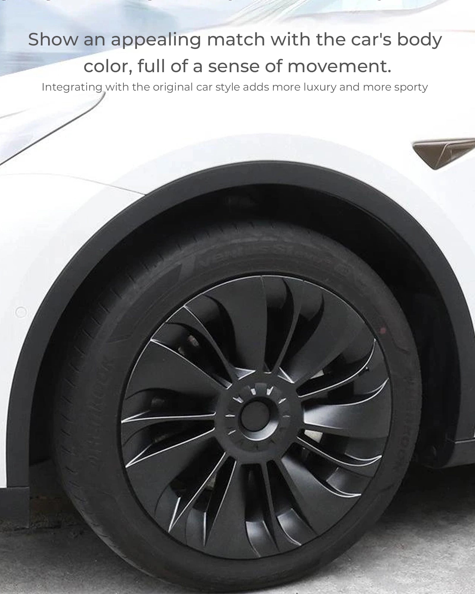 Conceal white edges flawlessly, achieving a seamless and fashionable overall appearance. Elevate your Model Y with the exclusive Hubcap - Turbo Enforcer for a truly distinctive touch.
