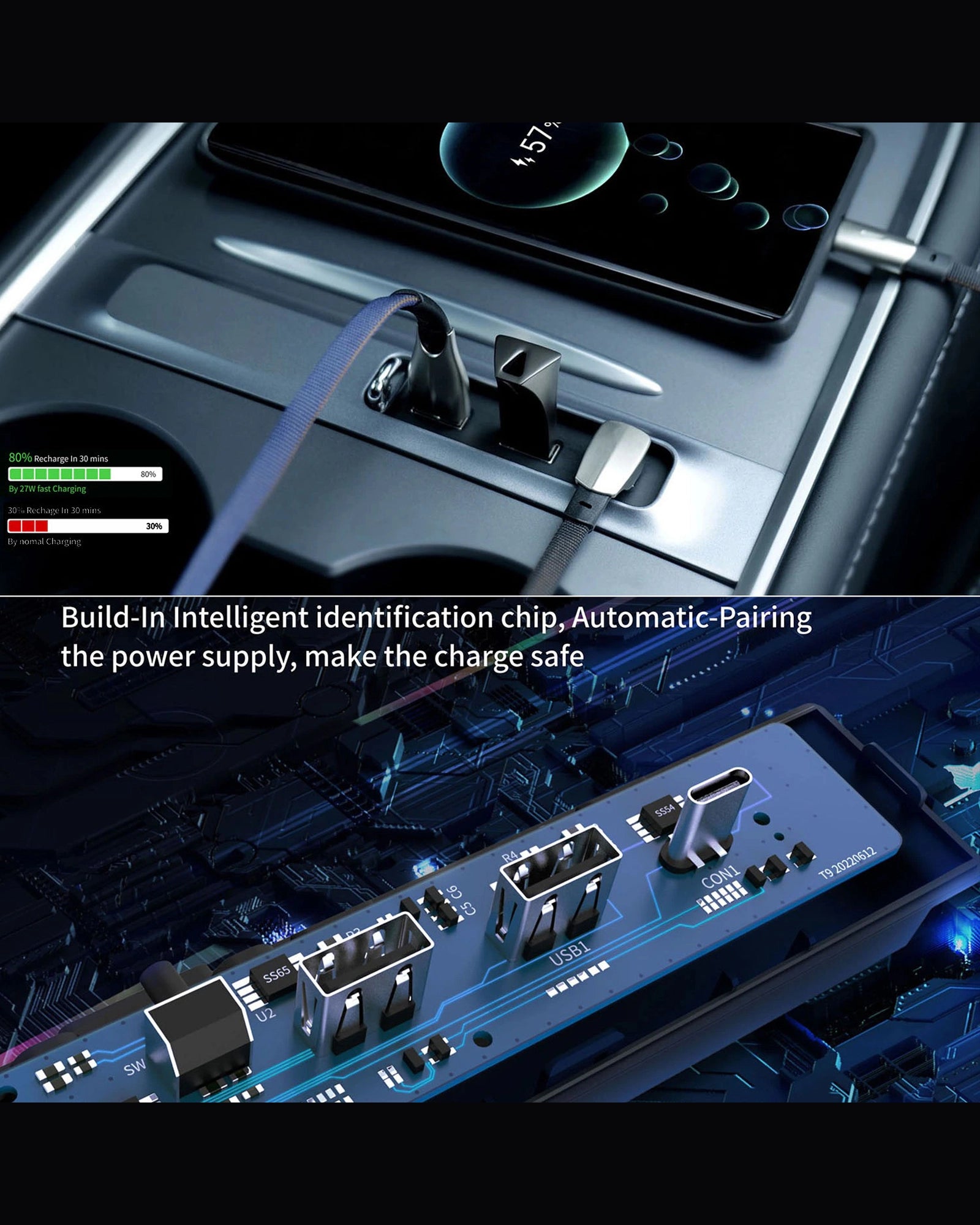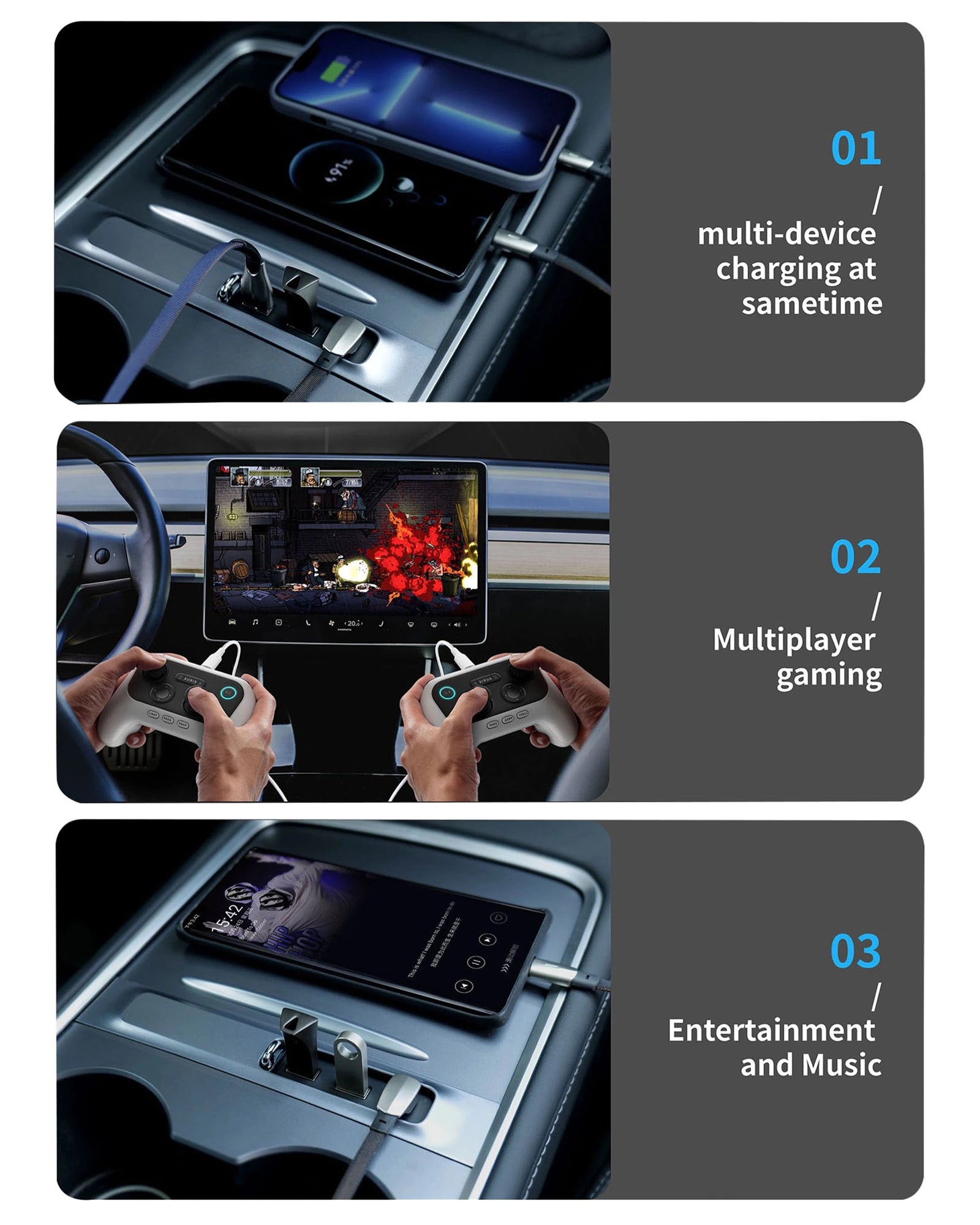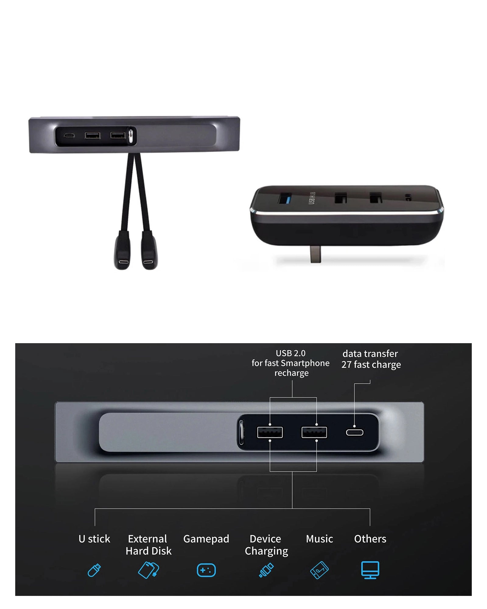 Equipped with 1 Type-C port and 2 USB ports for fast charging and data transfer, it is compatible with various devices such as smartphones, headphones, iPads, MacBooks, and more.